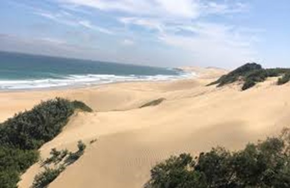 Der größte Dünenstreifen Südafrikas, das Alexandria Dune Field, zieht sich über mehr als 70 Kilometer östlich von Gqeberha, früher Port Elizabeth, die Küste entlang. Bis zu drei Kilometer erstreckt sich der Strand landeinwärts; bis zu 140 Meter Höhe erreichen die Sandberge, die vom Wind getrieben stetig nach Osten wandern.