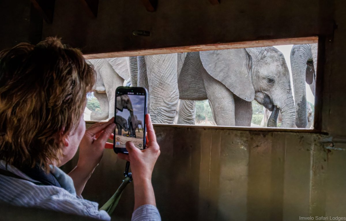 Imvelos berühmte ‚Look Up‘-Verstecke sind mehr als nur sichere Beobachtungsposten – sie bieten die einmalige Chance, Elefanten hautnah zu erleben und dabei faszinierende Interaktionen zu beobachten. Gleichzeitig eröffnen sie fantastische Fotomöglichkeiten – selbst für leidenschaftliche Hobbyfotografen. Die Verstecke bestehen aus umgebauten Stahlcontainern, tief in den Kalahari-Sand eingegraben, so dass es dort auch während der sommerlichen Hitze Hwanges angenehm kühl bleibt. Sie sind mit gemütlichen Bänken ausgestattet, sodass man entspannt Platz nehmen kann. Und das Beste: Sie verfügen natürlich über eine Spültoilette – Safari-Komfort mit einem Augenzwinkern!